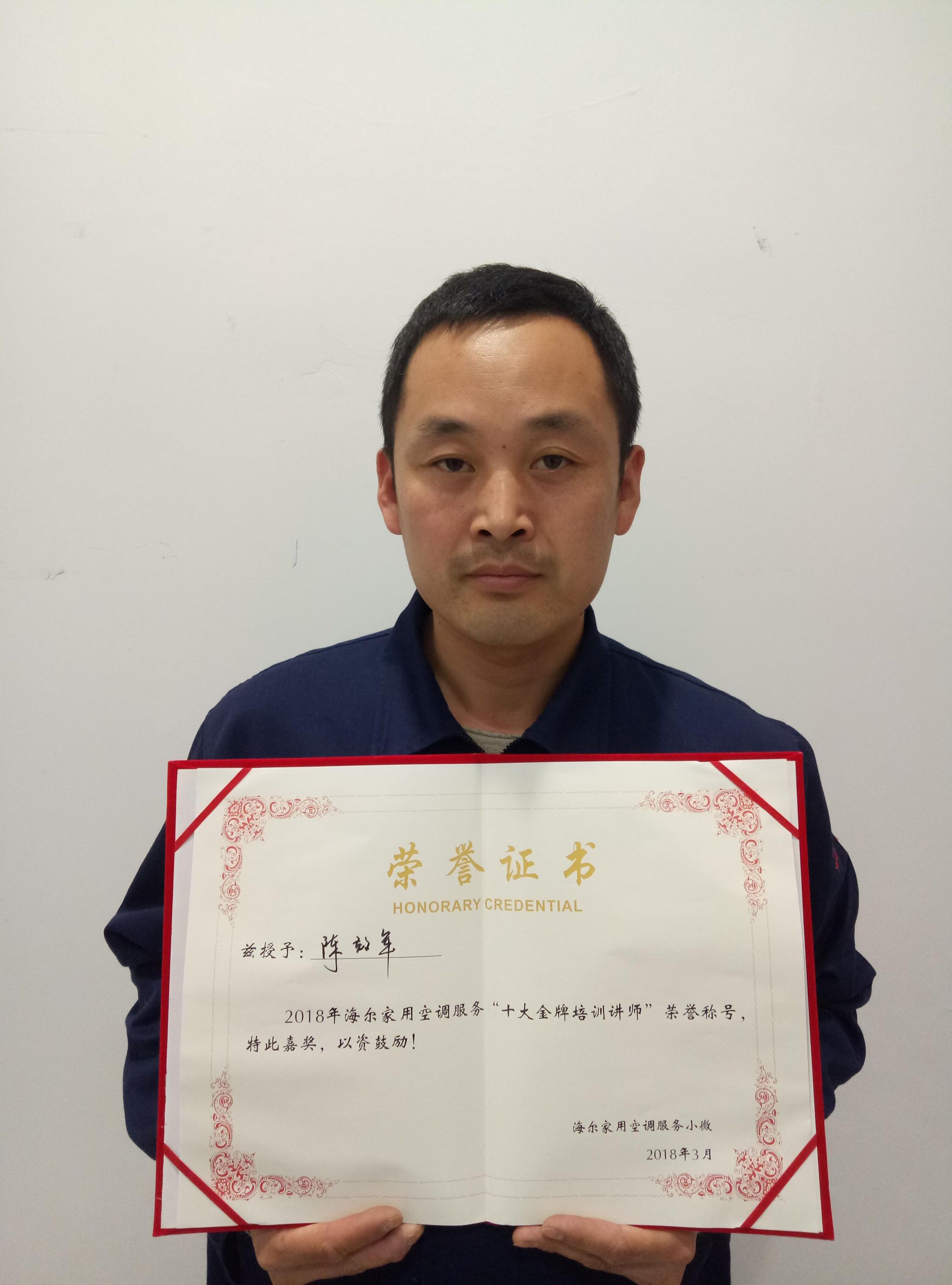 2018年3月27日海爾集團在合肥舉辦了全國金牌講師選拔大賽,全國各地42個工貿(mào)194名服務(wù)師參加選拔。九州宜家佳家電維修中心維修員陳效軍同志參加了此次選拔,并在此次比賽中以優(yōu)異的表現(xiàn)斬獲了家用空調(diào)服務(wù)“十大金牌培訓講師”的榮譽稱號。 本次培訓講師選拔分為參觀學習與技能比武兩部分,陳效軍等參選人員一起參觀了合肥工廠空調(diào)組操作流程,并學習合肥互聯(lián)工先進的技術(shù)。在參觀學習之后參選工程師與合肥互聯(lián)工廠技術(shù)人員進行了焊接技能比武與樣機質(zhì)量檢測。經(jīng)過逐次較量,陳效軍同志憑借著自己嫻熟的技術(shù)與周到的服務(wù),從194名選拔人員中脫穎而出,又通過升級培訓最終入選2018年海爾家用空調(diào)“十大金牌培訓講師”。(九州宜家佳維修中心 吳允合 )