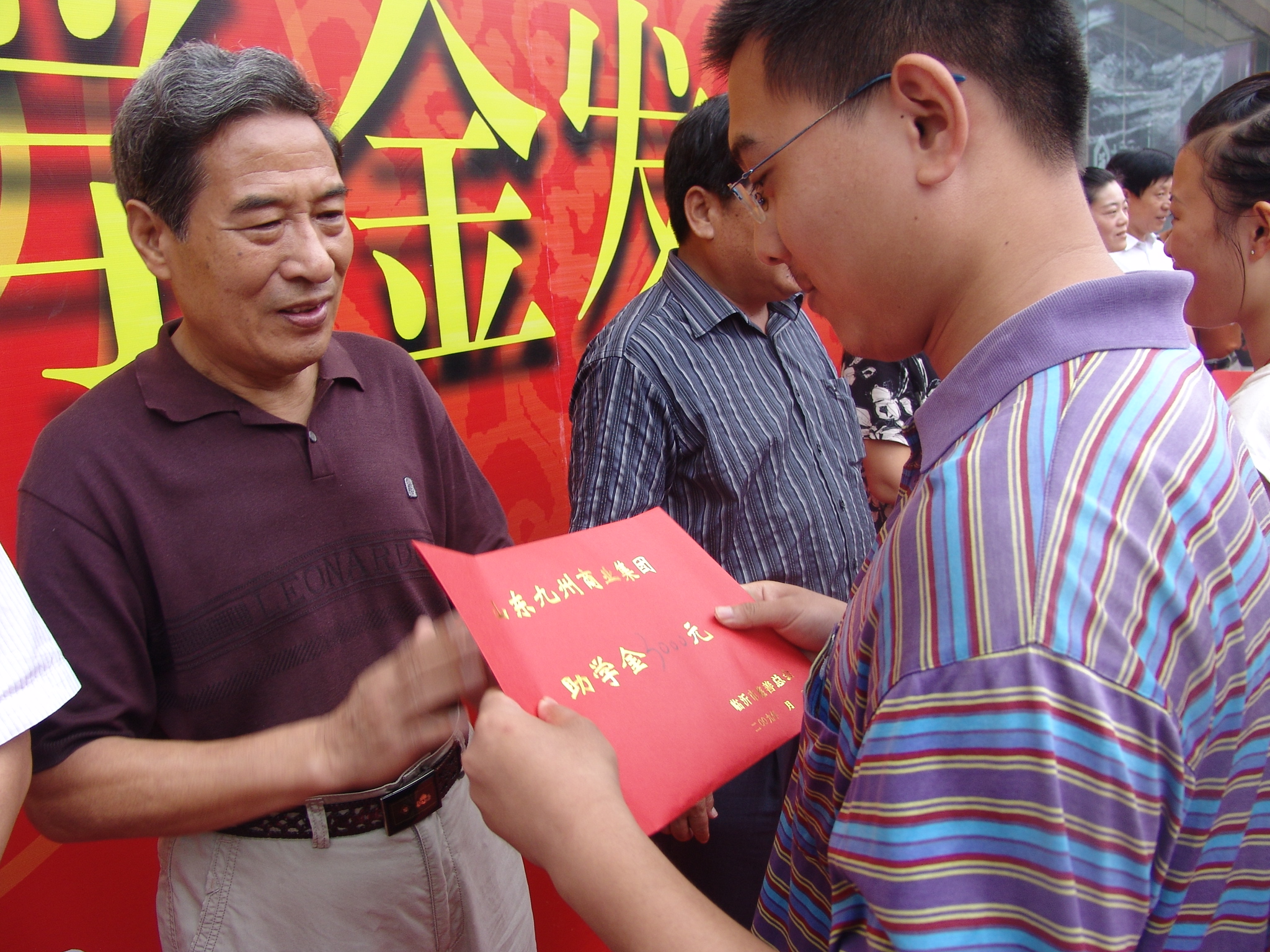 (董事長向高考新生發(fā)放助學(xué)金)
