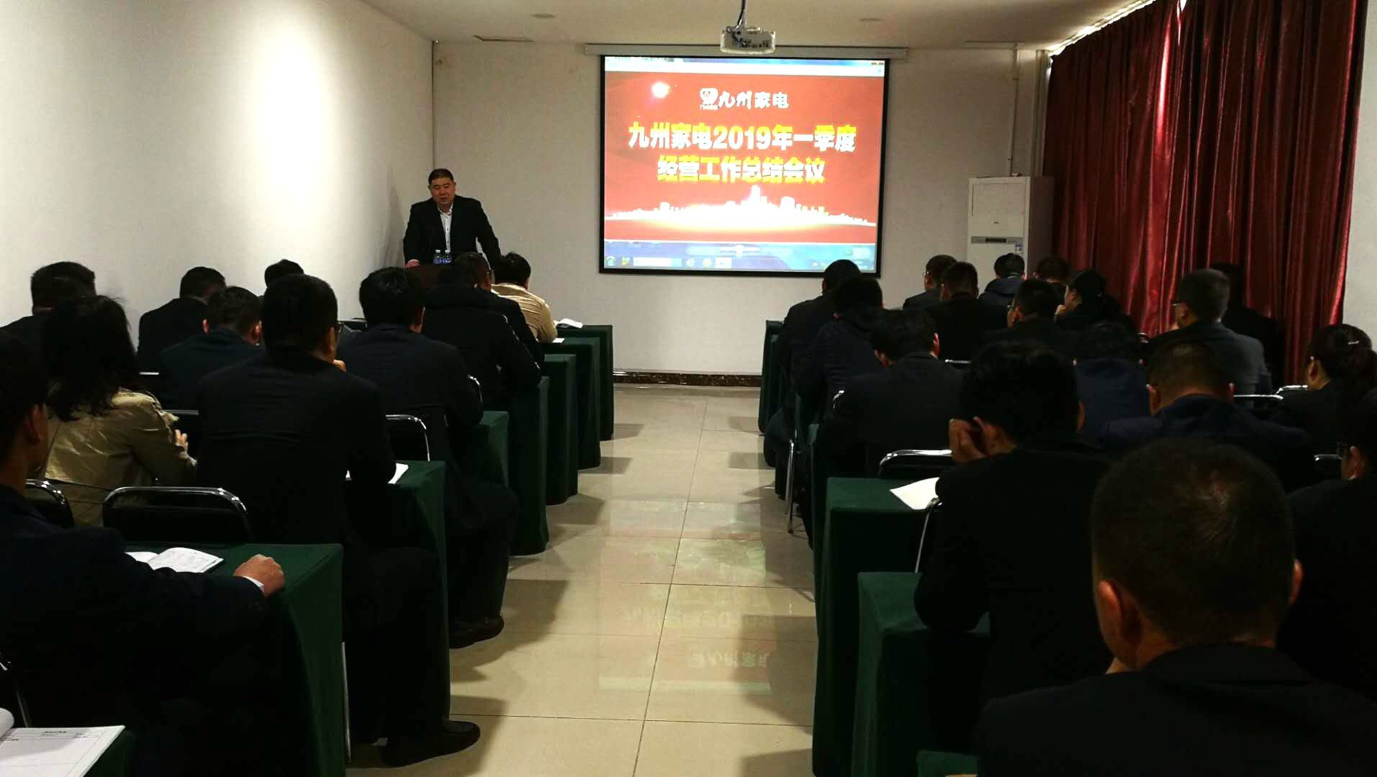 4月22日上午,九州家電在解放路店二樓會議室召開2019年第一季度經營工作總結會。九州家電主管及以上管理人員共計60余人參加了會議。會議由公司總經理王志軍主持。 會上,空調采購部、臨沭店等部門負責人分別就本部門一季度經營工作開展情況及二季度的工作計劃進行了匯報。公司副總經理張淑瑞就九州家電一季度整體經營情況、主要工作推進情況做了詳細的總結分析,并部署了二季度的工作計劃。最后,王志軍對各部門經營管理情況進行點評,在肯定成績的同時,重點指出了經營管理中存在的問題與不足,要求全體管理人員要擺正自己的位置,多從自身找原因,開拓思維,提升經營業(yè)績;他特別對基層管理人員提出要求,要注重學習,敢于管理,提升綜合能力,確保經營、管理工作的順利推進。(文/王紀芳 圖/高艷艷 編輯/楊信才)