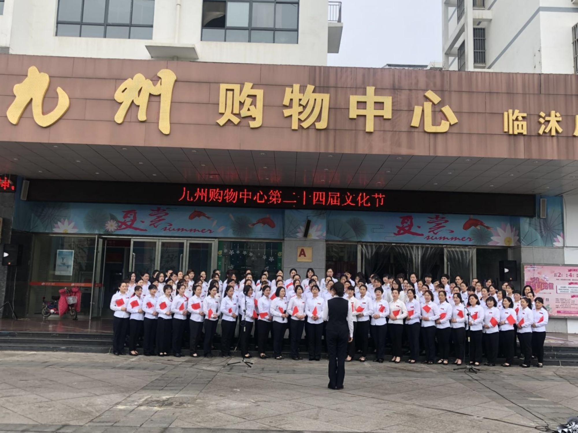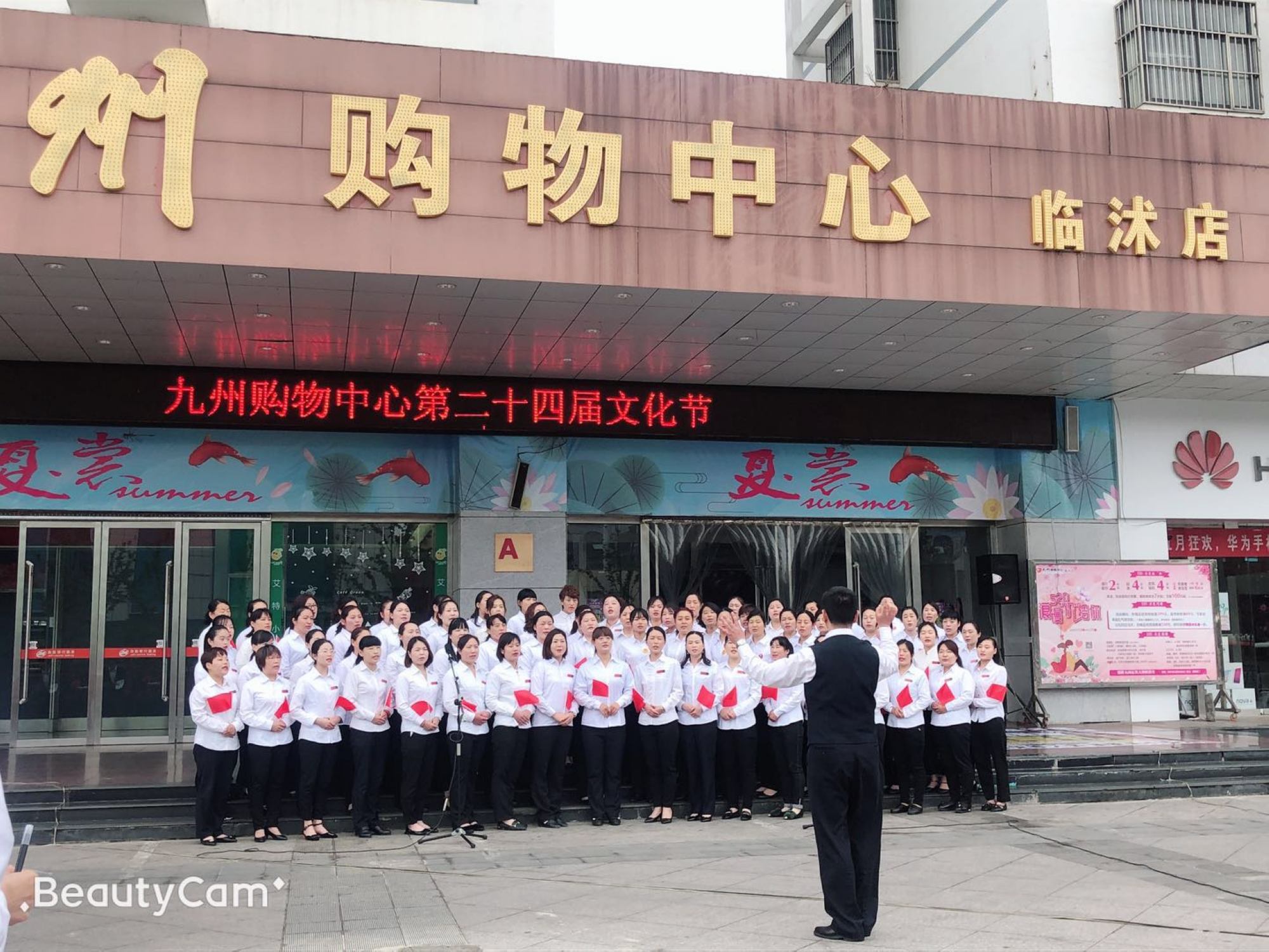 5月18日上午,九州大廈臨沭店在門前廣場舉行歌詠比賽。一大早,全體員工按照要求統(tǒng)一著裝,畫著精致的淡妝在門前廣場集合,為即將開始的比賽做最后的排練。主持人認真的背著主持詞,一遍一遍重復(fù)練習(xí)。 伴隨著《九州集團之歌》的音樂,比賽正式拉開了帷幕,首先是臨沭店百貨一部給大家?guī)淼摹洞笾袊,接著是百貨二部的《愛我中華》,最后超市壓軸帶來了《歌唱祖國》。唱到最后,全體員工一起加入進來,齊聲高歌,洪亮的歌聲引來了路人的駐足圍觀;顒拥拈_展展現(xiàn)了九州人積極向上的精神風貌,樹立了良好的企業(yè)形象。(文圖/吳淑芳)