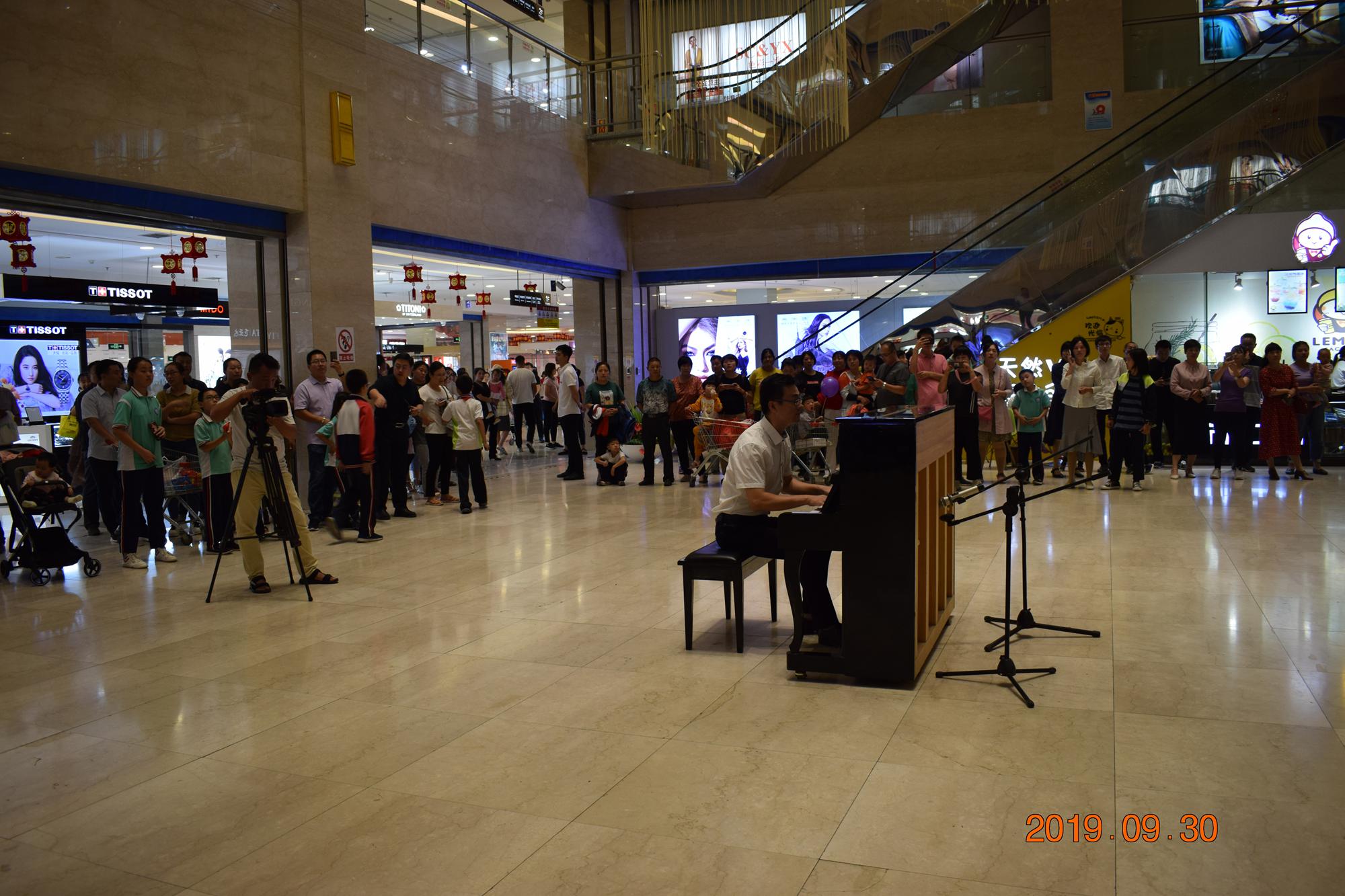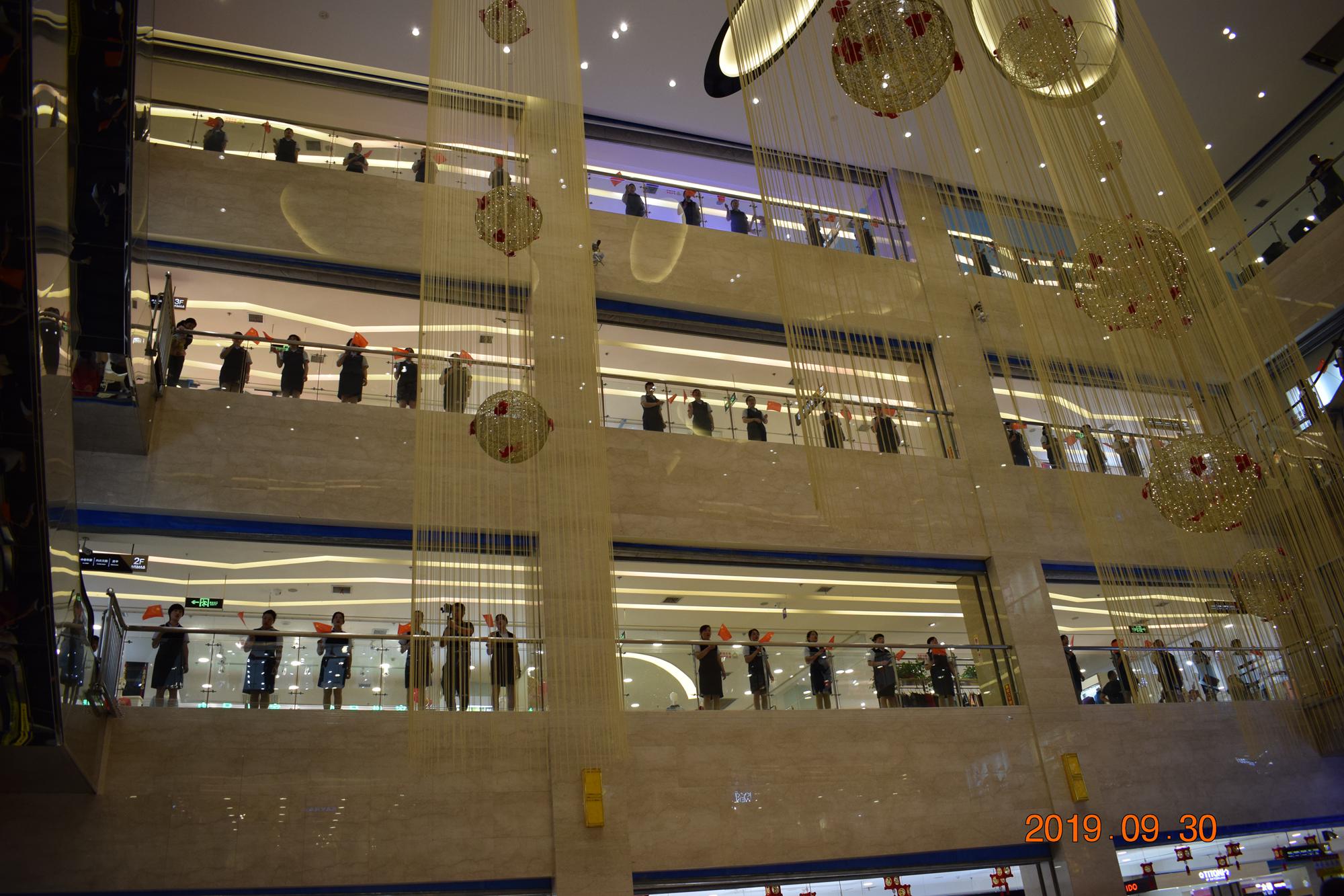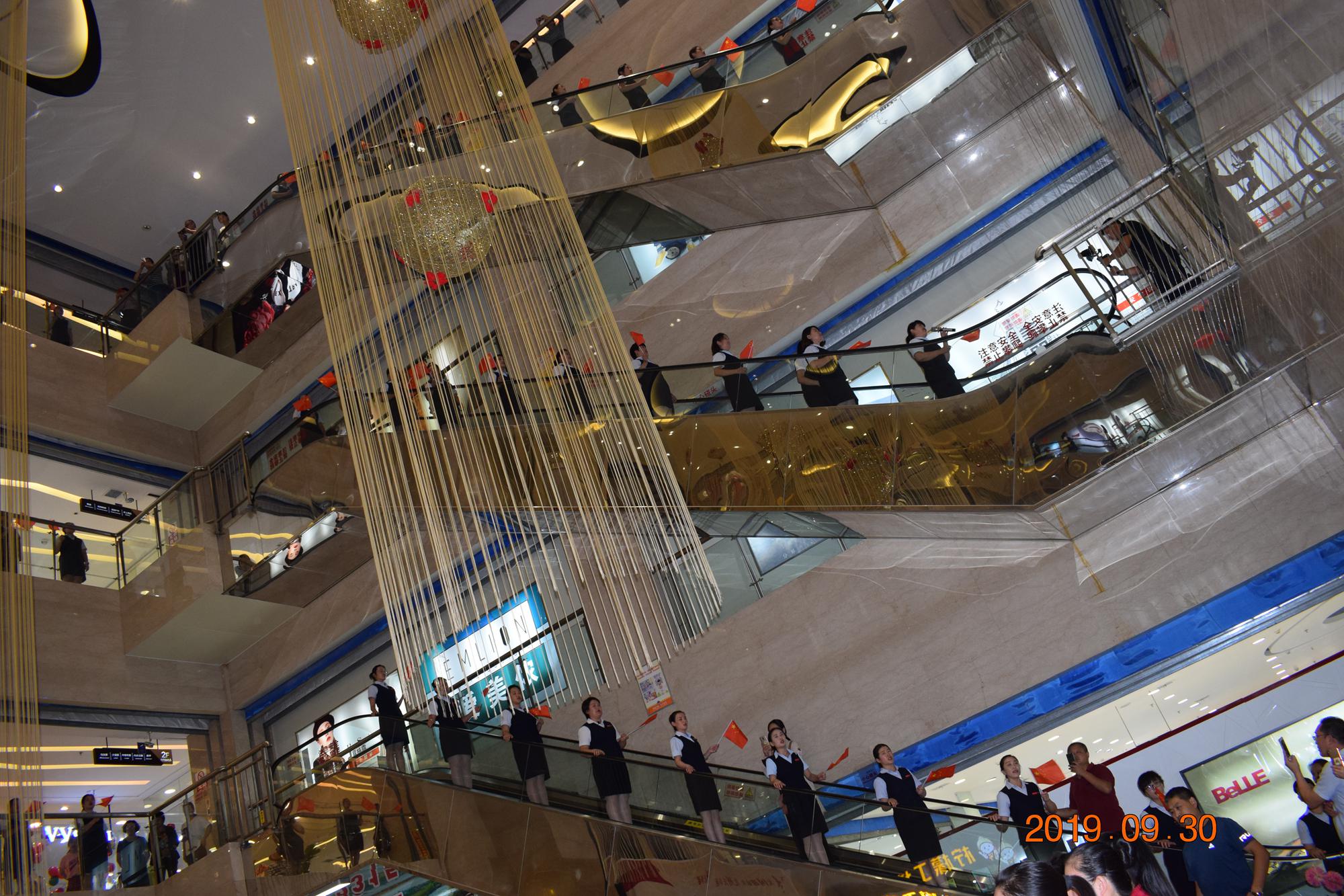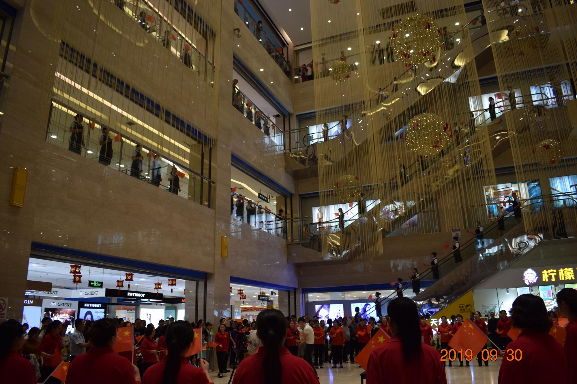 9月30日晚7點,九州商業(yè)大廈長安店一樓中廳舉行了《我和我的祖國》合唱快閃活動。