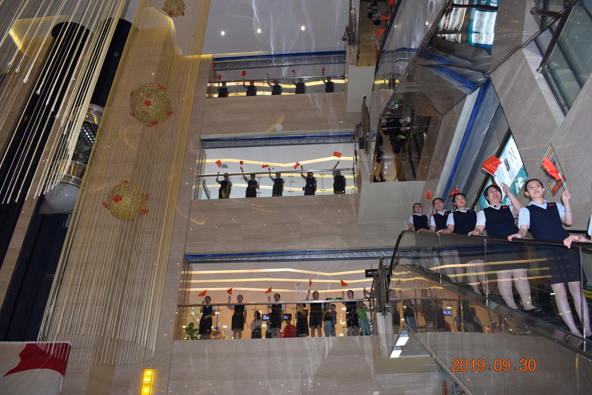 本次快閃活動由長安店自編、自導(dǎo)、自演,185名員工分別從負一樓至四樓商場的各個角落,邊唱《我和我的祖國》邊從四周向中廳匯聚,最后在一樓中廳以及一至四樓的中廳兩側(cè)扶梯、中廳護欄旁等位置,共同合唱《我和我的祖國》。