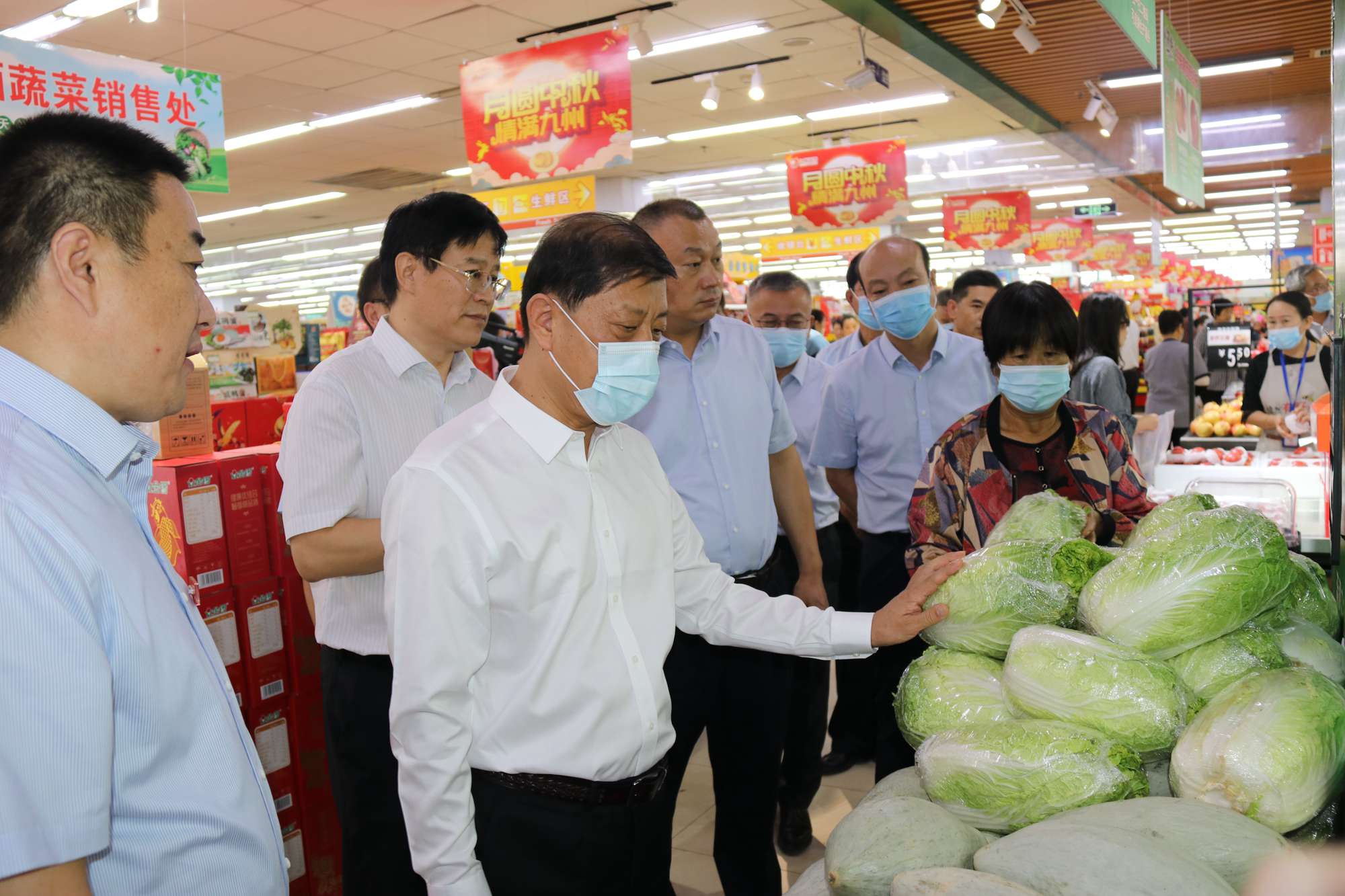 9月29日上午,臨沂市委書記王安德到九州購物中心齊魯園店檢查節(jié)日食品安全工作。副市長劉賢軍,市商務(wù)局黨組書記、局長張洪永,市市場監(jiān)督管理局黨組書記、局長黃杰陪同。集團(tuán)董事長、總經(jīng)理?xiàng)钣罇|,超市公司總經(jīng)理李國等參加活動(dòng)并匯報(bào)工作。