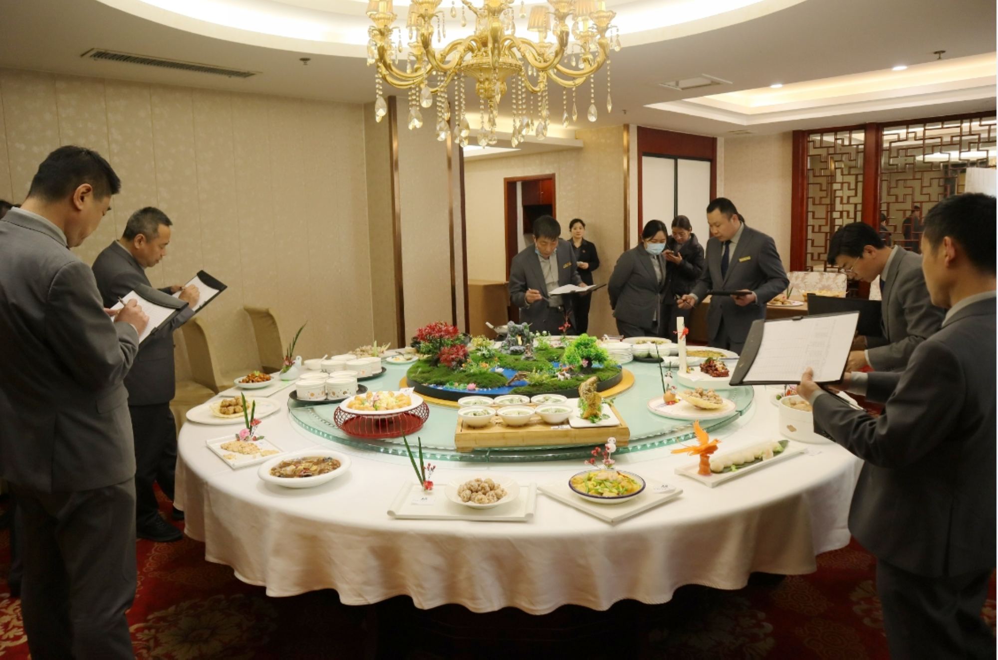 復(fù)評(píng)現(xiàn)場,大廚們亮出絕活,烹飪技術(shù)爐火純青,盤飾雕刻栩栩如生。經(jīng)過精心烹飪、調(diào)味、裝飾、擺盤,一道道精致菜品完美呈現(xiàn)在評(píng)委小組面前。評(píng)委小組對(duì)每位大廚的烹飪技術(shù)、菜品呈現(xiàn)進(jìn)行評(píng)判、打分,對(duì)復(fù)評(píng)結(jié)果進(jìn)行總結(jié)。