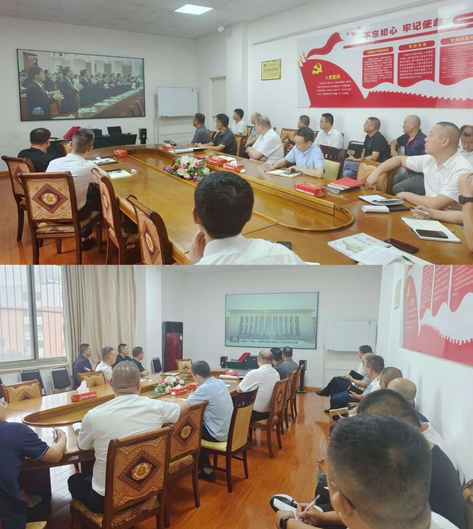 會上,首先組織黨員開展了“講故事、學理論”活動。孫恩濤、楊信才兩名同志分別帶領與會黨員學習了習近平總書記在福建寧德扶貧工作事跡和在山東省考察調研時的重要講話精神,并結合自身工作實際,分享交流心得體會。會上,與會黨員通過觀看視頻的方式學習了《中國共產黨第二十屆中央委員會第三次全體會議公報》,并為在8月份入黨的2位同志過了政治生日。