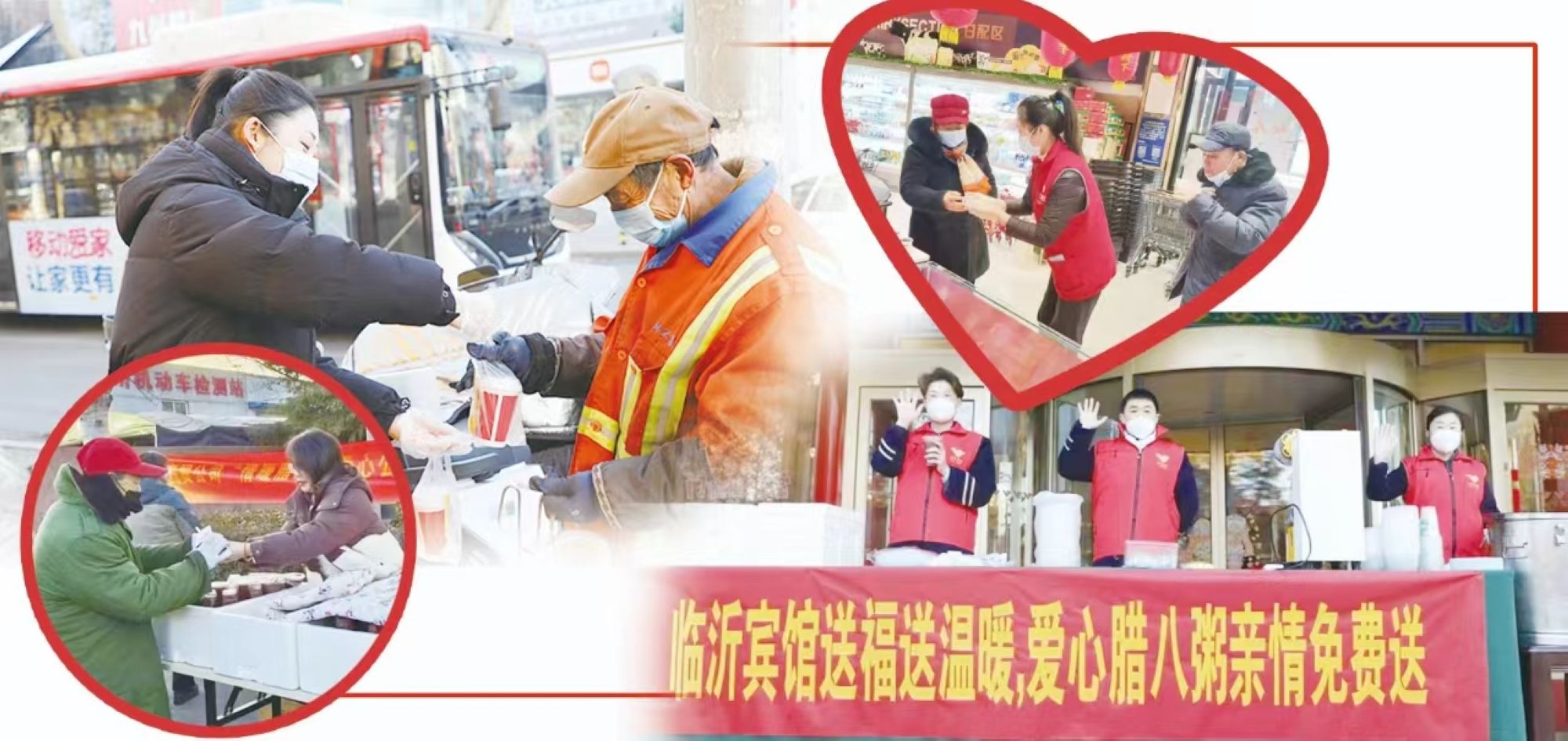 在九州超市部分門(mén)店內(nèi),工作人員熱情地為顧客遞上一碗碗熱氣騰騰的粥。汽貿(mào)公司的員工們則穿梭在街頭巷尾,將粥送到環(huán)衛(wèi)工人們手中,其中小于在送完粥后,臉上洋溢著幸福的笑容,感慨道:“看到他們喝粥時(shí)臉上綻放的笑容,我這心里滿(mǎn)是溫暖,感覺(jué)一早上的忙碌都值了!痹诰胖菝朗硤@門(mén)口、臨沂賓館開(kāi)發(fā)區(qū)店,員工將臘八粥裝好打包,送到周邊執(zhí)勤特警、環(huán)衛(wèi)工人、過(guò)往的公交車(chē)司機(jī)和市民手里。