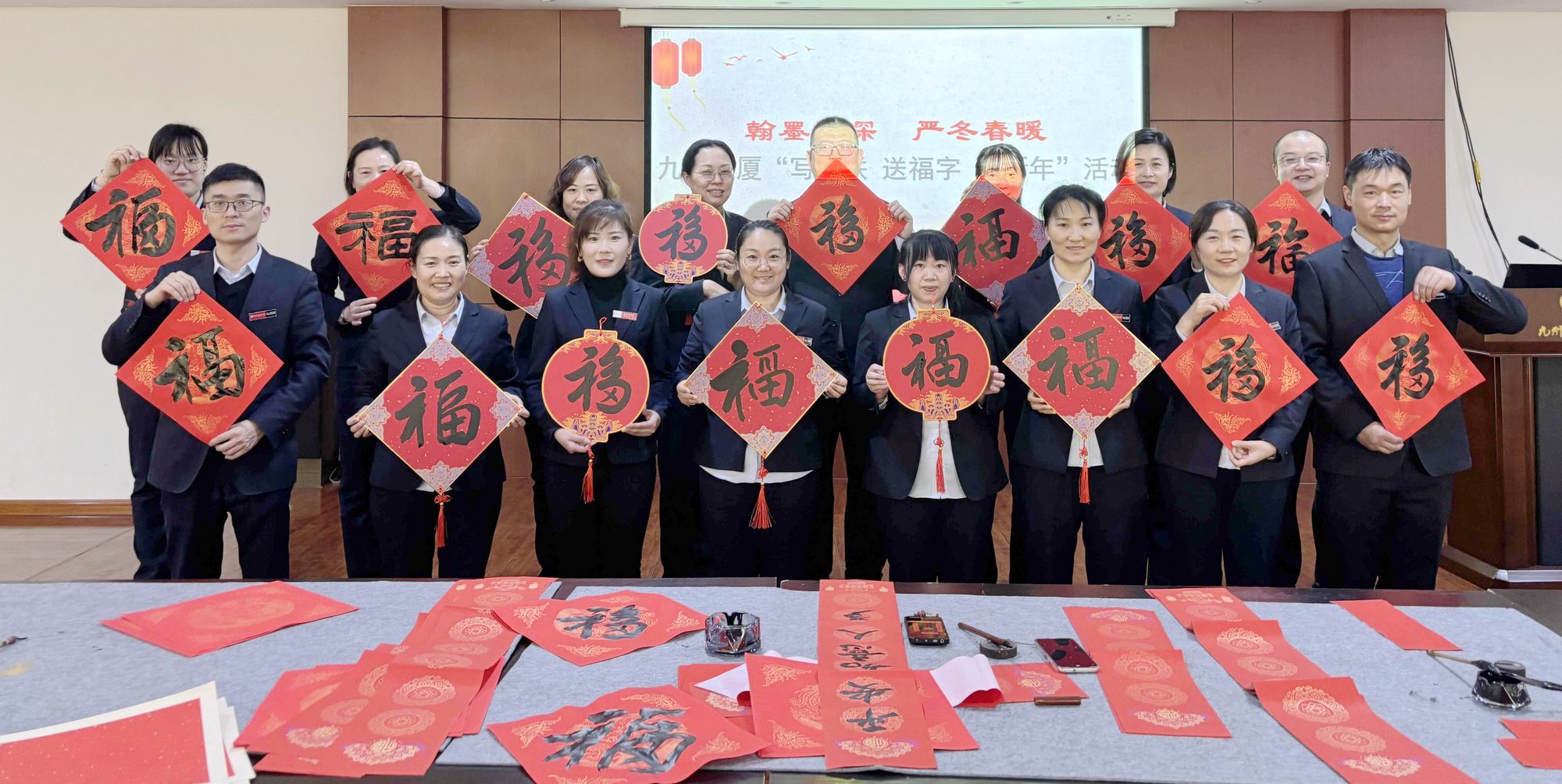 新春佳節(jié)來臨之際,為弘揚(yáng)中華民族優(yōu)秀傳統(tǒng)文化,豐富職工文化生活,1月10日下午,九州商業(yè)大廈黨總支聯(lián)合大廈工會(huì)分會(huì)、團(tuán)支部在七樓職工培訓(xùn)室組織開展了“寫春聯(lián) 送福字 迎新年”活動(dòng)。
