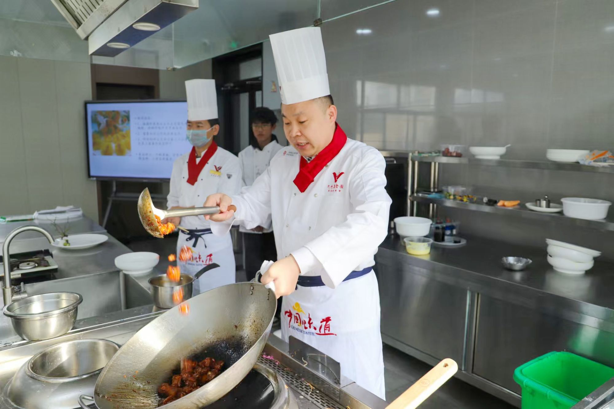 本次授課,魏茂旭精心挑選XO醬貴妃大連鮑、江雪話梅小排、金絲繡球鳳尾蝦三道菜品進(jìn)行講解。菜品選取常用食材,制作過程便于家庭制作。魏茂旭分別從食材選擇、切配技巧、烹飪火候、裝盤造型等方面進(jìn)行了詳細(xì)的講解和制作,將復(fù)雜的烹飪過程化解為一個個易于理解的小步驟。老師們分別對菜品進(jìn)行品嘗、做出評價。大家一致認(rèn)為,菜品符合春節(jié)喜慶團(tuán)圓氛圍。