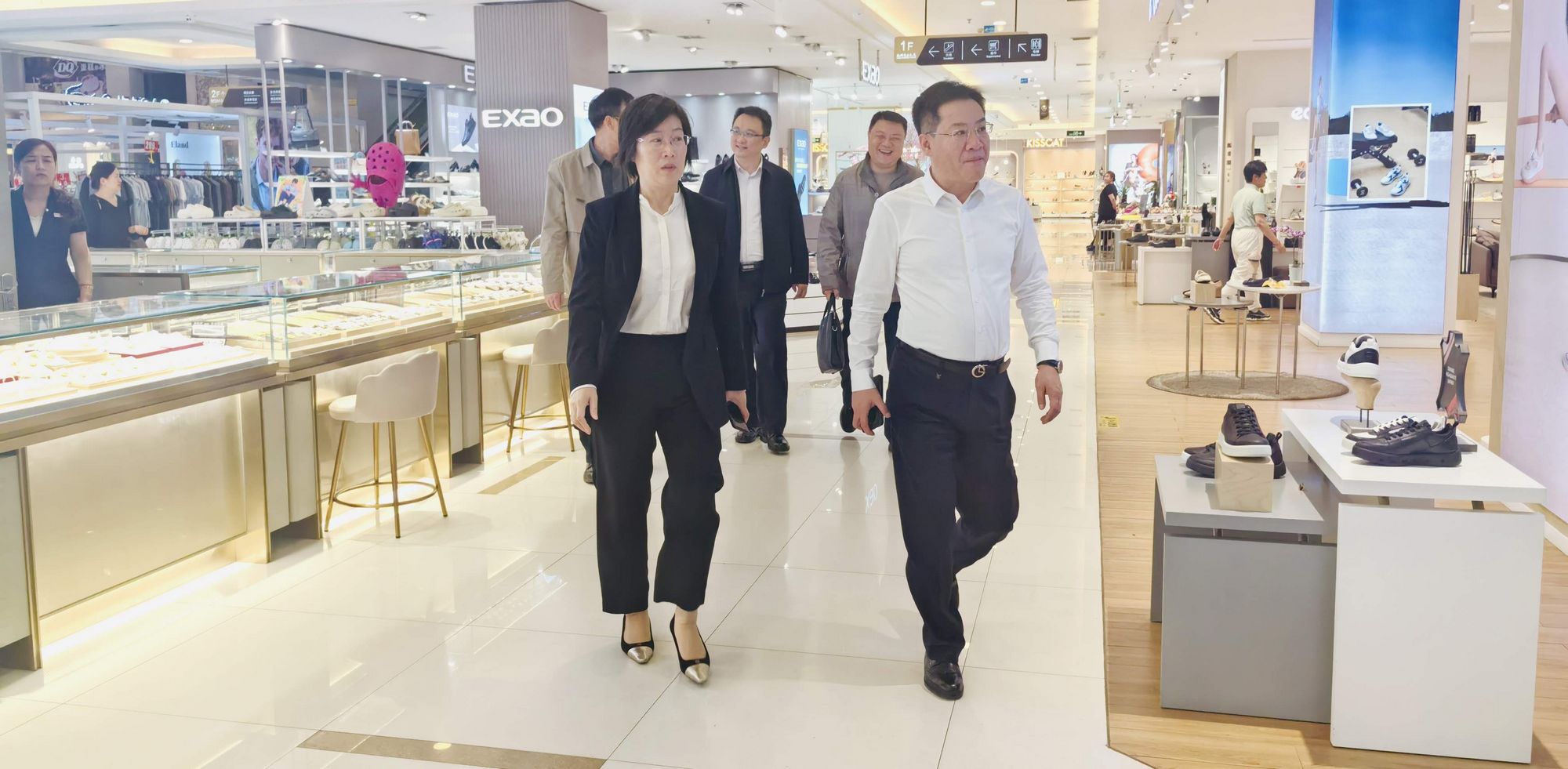 4月26日下午,臨沂市商務局黨組書記、局長程凱,黨組成員、副局長薛詠,商務發(fā)展服務中心副主任張劍等人一行到集團調(diào)研“五一”節(jié)前安全生產(chǎn)及助力外貿(mào)轉(zhuǎn)內(nèi)銷工作。集團董事長、黨委書記王楠楠,集團黨委副書記徐凱,九州商業(yè)大廈副總經(jīng)理、黨總支書記程永濤等陪同調(diào)研。