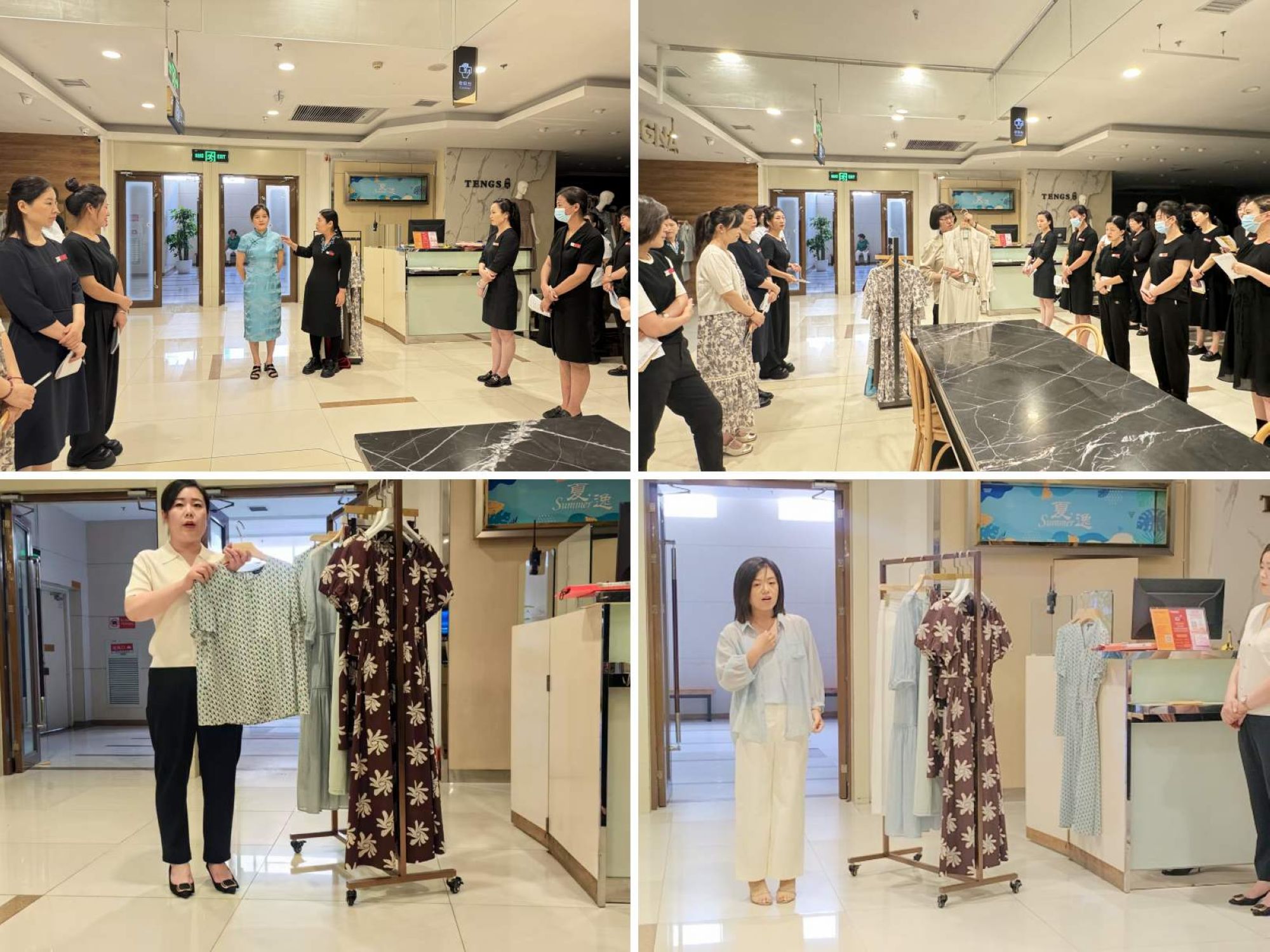 每日晨會(huì)伊始,來(lái)自不同專(zhuān)柜的員工便化身“穿搭講師”,精心挑選當(dāng)季熱門(mén)單品,從基礎(chǔ)款針織衫到潮流連衣裙,通過(guò)現(xiàn)場(chǎng)展示與實(shí)操搭配,演繹同一件服裝在不同場(chǎng)景下的多樣可能,同時(shí),結(jié)合不同商品的色彩呼應(yīng)、材質(zhì)碰撞、風(fēng)格融合等搭配邏輯生動(dòng)詮釋了“一衣多穿”的魅力。在良好的交流氛圍中,大家分散思維、各抒己見(jiàn),每日高頻次、小體量的分享,讓員工在碎片化時(shí)間中積累知識(shí),共同進(jìn)步。