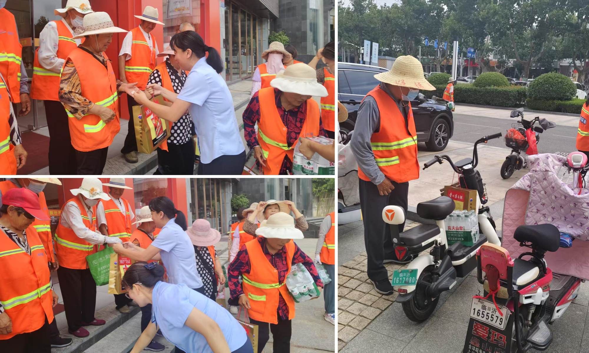 活動當(dāng)天,專賣店工作人員早早的便將精心準(zhǔn)備的綠豆、白糖、礦泉水等消暑物資擺放整齊。隨著結(jié)束清掃任務(wù)的環(huán)衛(wèi)工人陸續(xù)到來,工作人員將消暑物資送到環(huán)衛(wèi)工人手中,為他們在酷暑中帶來一份沁人心脾的清涼。