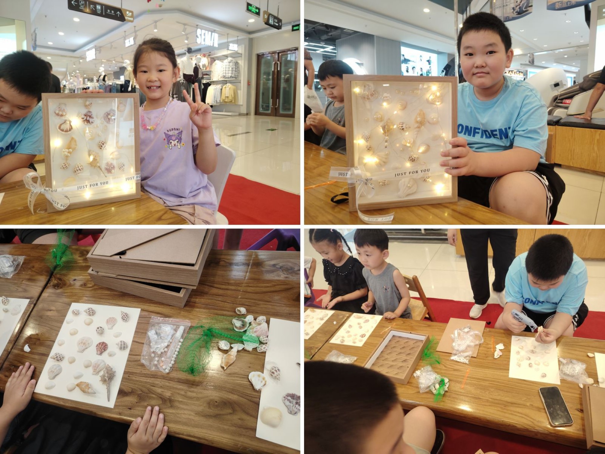 8月10日下午,九州商業(yè)大廈在解放路店五樓商場舉辦了一場別開生面的“貝殼相框畫DIY沙龍”親子活動(dòng),吸引了眾多家長和小朋友的熱情參與。