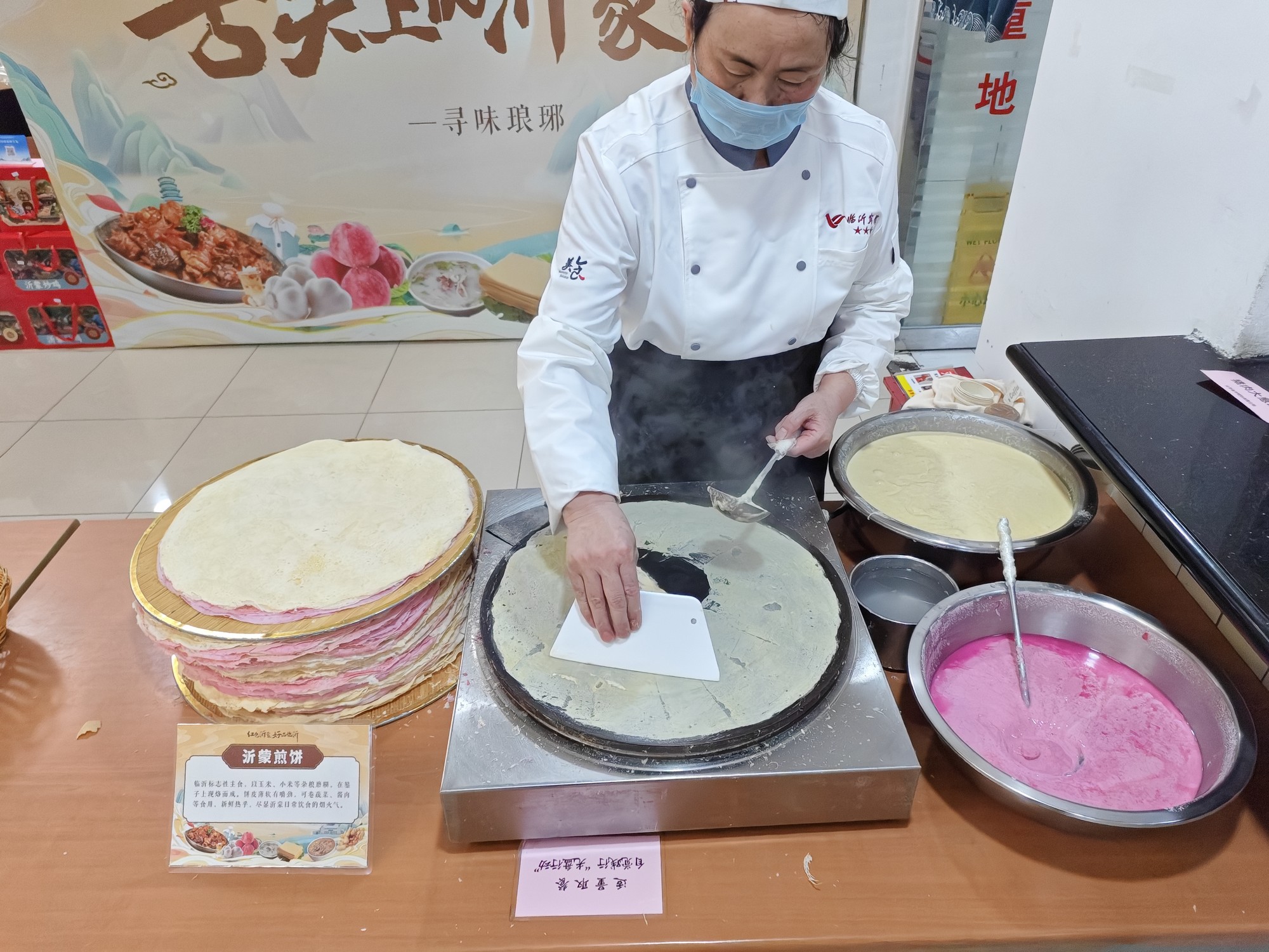 活動(dòng)期間,臨沂賓館廚師團(tuán)隊(duì)?wèi)?yīng)邀入駐中國(guó)貿(mào)促會(huì)機(jī)關(guān)食堂,每日午餐匠心烹制熱菜、特色醬菜等菜品。其間,精心推出了臨沂炒雞、蒙山全羊湯、醇香糝湯、蒙陰光棍雞、酥香牛蒡等12道地道沂蒙菜肴;現(xiàn)場(chǎng)烙制臨沂煎餅,搭配特色馓子、香椿、蒜薹等,讓賓客沉浸式體驗(yàn)沂蒙傳統(tǒng)特色美食,受到賓客一致好評(píng)。