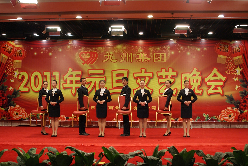 集團(tuán)舉行2011年元旦文藝晚會(huì) 歡聲笑語辭舊歲,鶯歌燕舞迎新春,山東九州商業(yè)集團(tuán)2011年元旦文藝晚會(huì)于12月28日晚在臨沂賓館舉行。集團(tuán)領(lǐng)導(dǎo)楊沂城、王佐文、楊永東等與五百多名員工一起觀看了演出。 晚會(huì)節(jié)目形式多樣,歌舞、小品、三句半、詩歌朗誦、武術(shù)表演等節(jié)目從不同的角度熱情謳歌了九州人在2010年所取得的輝煌成績(jī)。晚會(huì)在歌伴舞《和諧中國 和諧九州》中,拉開了序幕;群口相聲《九州運(yùn)動(dòng)會(huì)》形式新穎,寓教于樂,在輕松愉快中向觀眾展示了九州人團(tuán)結(jié)奮進(jìn)、勇于創(chuàng)新的精神風(fēng)貌;民族舞《荷塘月色》表演清新脫俗,意境優(yōu)美,讓臺(tái)下的觀眾如癡如醉;詩朗誦《我心中的九州》和《我愛九州》,表達(dá)出了廣大九州員工立足本職,無私奉獻(xiàn)的決心,道出了廣大員工對(duì)企業(yè)的無限熱愛;《旅游服務(wù)禮儀展示》節(jié)目,向廣大觀眾展示了賓館員工良好的儀容儀表和嫻熟的崗位服務(wù)技能;小品《鳳落九州》語言詼諧幽默,表演生動(dòng)活動(dòng),博得臺(tái)下觀眾陣陣掌聲;歌伴舞《笑口常開》節(jié)奏歡快,充滿青春的氣息,展現(xiàn)了九州人朝氣蓬勃、積極向上的良好精神風(fēng)貌。最后,晚會(huì)在合唱《九州歡迎你》中落下帷幕。 整臺(tái)晚會(huì)氣氛熱烈、節(jié)目精彩、笑語不斷,始終洋溢著熱情、和諧、歡樂的氣氛。廣大員工相聚一起共同分享著2010年集團(tuán)所取得的輝煌成績(jī),也期待著更加美好的2011年。
