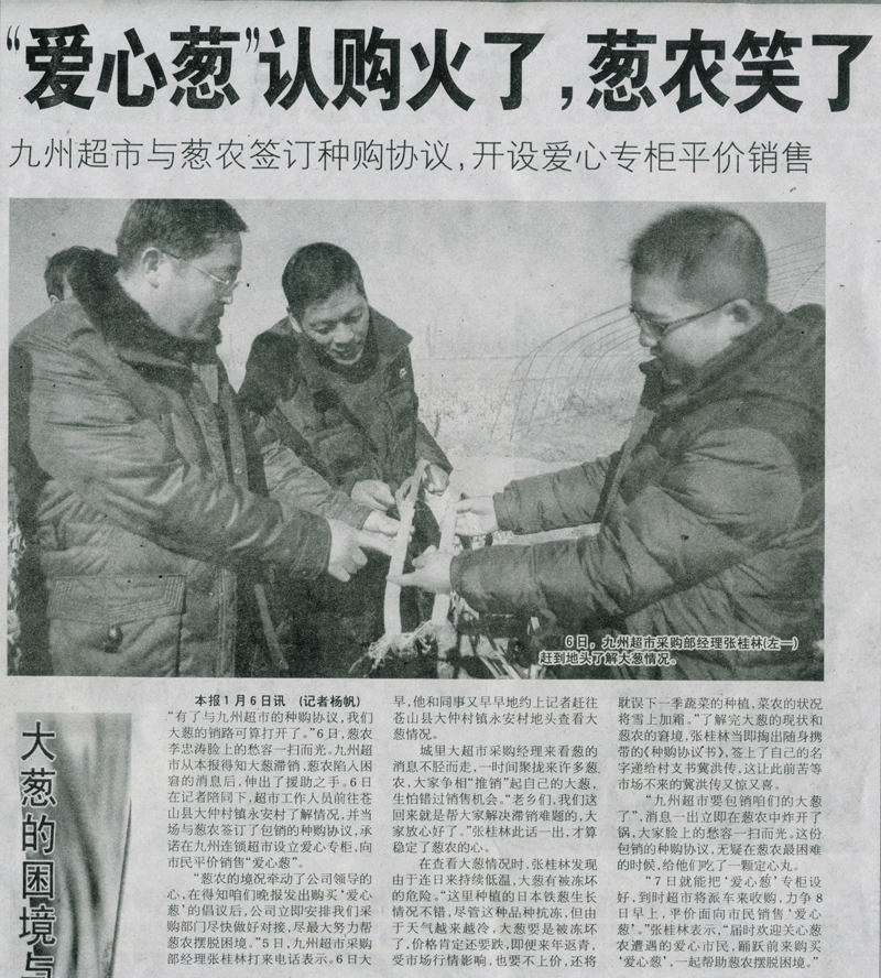購協(xié)議》,并在所屬超市門店設(shè)立“愛心蔥”專柜。2011年1月7日的《沂蒙晚報(bào)》刊發(fā)了專稿予以報(bào)道。以