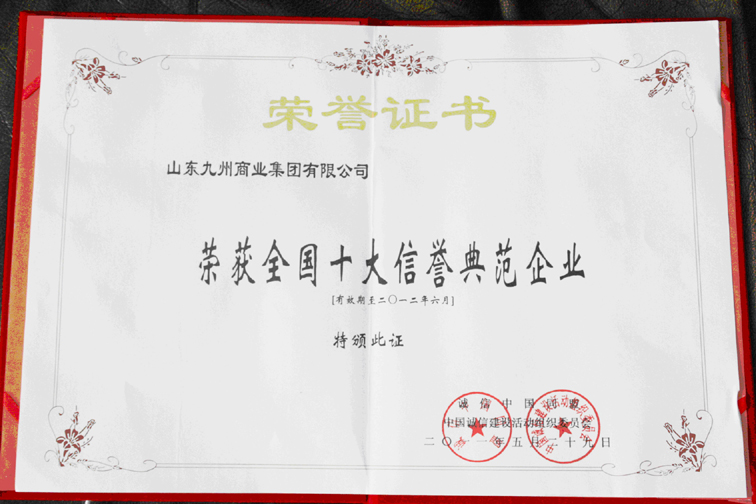 集團(tuán)榮獲全國(guó)十大信譽(yù)典范企業(yè)