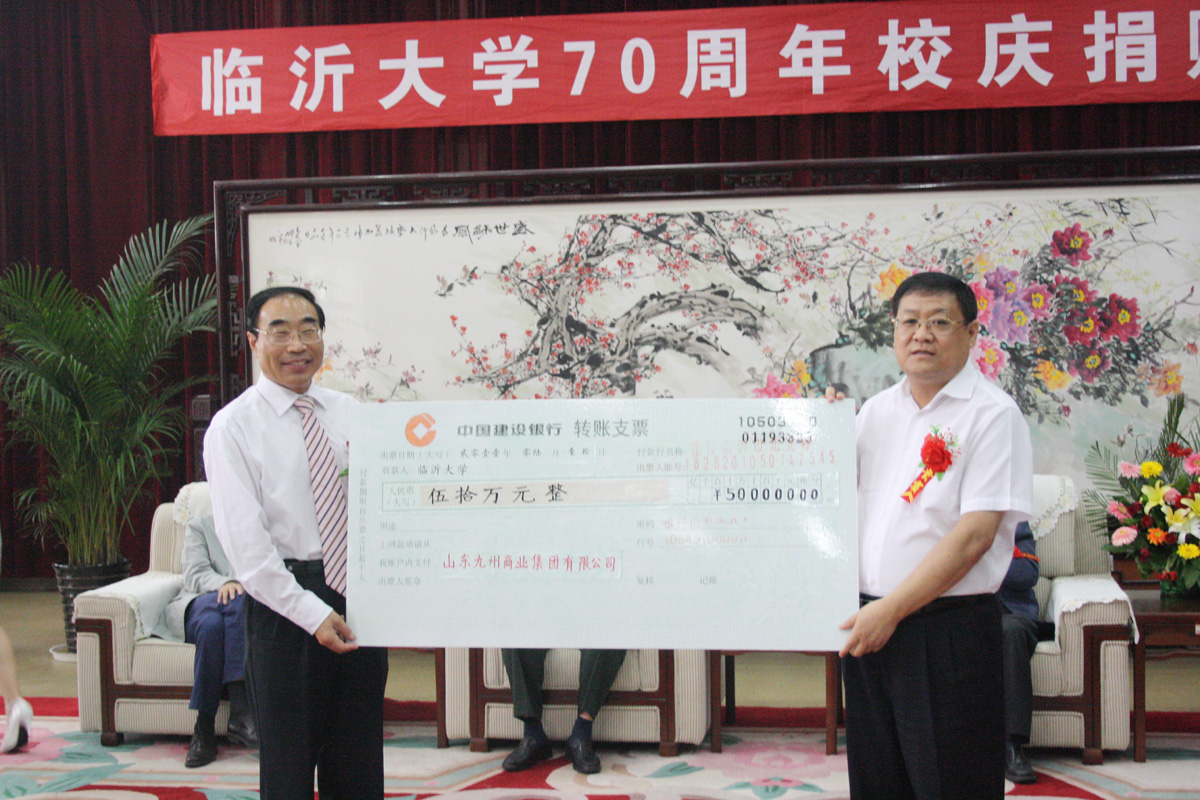在臨沂大學(xué)喜迎70華誕之際,集團(tuán)向臨沂大學(xué)捐款50萬元,支持臨沂大學(xué)辦學(xué)。董事長楊沂城,黨委書記王佐文出席捐贈(zèng)儀式。
