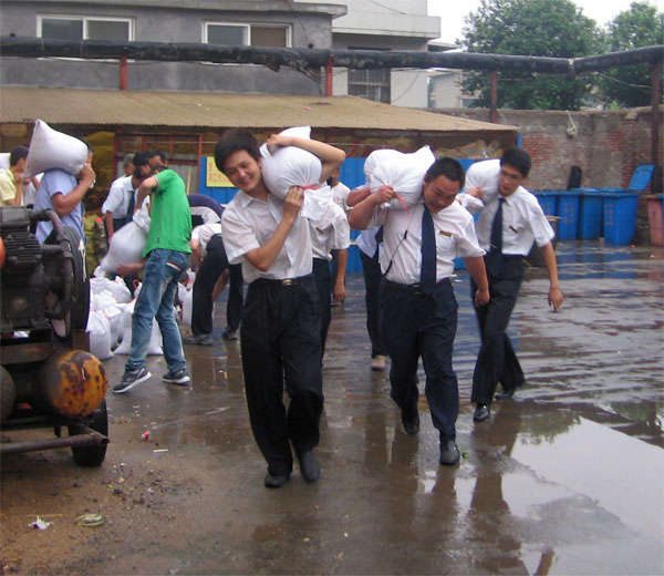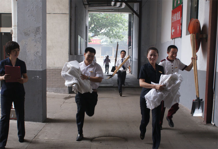 據(jù)市氣象局預(yù)測(cè)和市防汛指揮部通報(bào),今年夏季我市降水量較常年偏多,強(qiáng)降雨突發(fā)幾率較高,防汛形勢(shì)不容樂(lè)觀。在汛期來(lái)臨之際,臨沂賓館高度重視防汛工作,召開了以防汛為重點(diǎn)的安全專題會(huì)議。在防汛領(lǐng)導(dǎo)小組統(tǒng)一安排下,防汛搶險(xiǎn)突擊隊(duì)于6月、7月下旬組織了兩次次防汛搶險(xiǎn)實(shí)戰(zhàn)演練。 演練假設(shè)7、8月某日,暴雨來(lái)襲,賓館院內(nèi)積水成河,隨時(shí)可能流入地下停車場(chǎng),隨著水位不斷升高,極有可能侵入客房等經(jīng)營(yíng)部位。汛情就是命令,臨沂賓館立即啟動(dòng)防汛預(yù)案,迅速集結(jié)搶險(xiǎn)隊(duì)員,僅用時(shí)30分鐘就將險(xiǎn)情控制住。這次防汛搶險(xiǎn)實(shí)戰(zhàn)演練,大大提高了搶險(xiǎn)隊(duì)員的實(shí)戰(zhàn)能力,為我館防汛工作打下了堅(jiān)實(shí)的基礎(chǔ)。