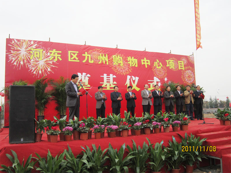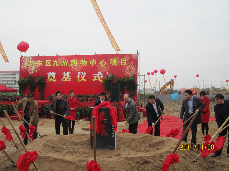 11月8日,河?xùn)|區(qū)九州購(gòu)物中心項(xiàng)目在河?xùn)|臨空經(jīng)濟(jì)區(qū)舉行奠基儀式,臨沂市、河?xùn)|區(qū)領(lǐng)導(dǎo)及市直有關(guān)部門負(fù)責(zé)人出席奠基儀式。集團(tuán)楊永東出席奠基儀式。 九州購(gòu)物中心項(xiàng)目位于臨空經(jīng)濟(jì)區(qū),占地45畝,建筑面積6.5萬(wàn)平方米。該項(xiàng)目建成后將成為集超市、酒店、餐飲娛樂(lè)為一體的綜合性購(gòu)物中心。