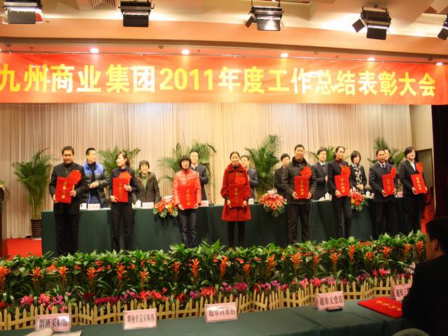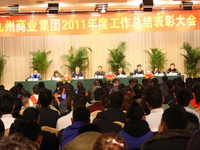 1月30日,集團(tuán)2011年度工作總結(jié)表彰大會(huì)在臨沂賓館舉行,會(huì)議總結(jié)了2011年度集團(tuán)各項(xiàng)工作,表彰了一年來涌現(xiàn)出來的先進(jìn)集體和個(gè)人,并對(duì)2012年工作計(jì)劃進(jìn)行了部署安排。董事長(zhǎng)楊沂城主持會(huì)議并作重要講話,黨委書記王佐文宣讀表彰決定,楊永東作《山東九州商業(yè)集團(tuán)2011年度工作報(bào)告》。受到表彰的先進(jìn)集體和個(gè)人及干部職工代表400余人參加會(huì)議。 工作報(bào)告從經(jīng)營(yíng)、管理、文明建設(shè)三個(gè)方面回顧了集團(tuán)過去一年取得的成績(jī)并給予肯定,并指出了經(jīng)營(yíng)管理中存在的問題。會(huì)上還對(duì)集團(tuán)一年來涌現(xiàn)出的29個(gè)先進(jìn)集體,兩個(gè)突出貢獻(xiàn)部位,一名勞動(dòng)模范,一名創(chuàng)新工作能手,27名崗位標(biāo)兵,52名優(yōu)秀管理人員和1085名先進(jìn)工作者進(jìn)行了表彰。汽貿(mào)公司副總經(jīng)理、順通長(zhǎng)城4S店經(jīng)理曲邦恒,超市公司苗莊店生鮮主管張興峰分別代表先進(jìn)集體和先進(jìn)個(gè)人發(fā)言。 會(huì)議要求,集團(tuán)廣大干部職工要以先進(jìn)為榜樣,大力弘揚(yáng)企業(yè)精神,團(tuán)結(jié)一心、拼搏奉獻(xiàn),努力完成2012年度各項(xiàng)經(jīng)營(yíng)指標(biāo)。