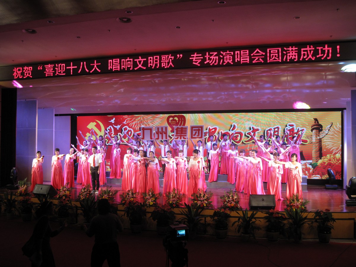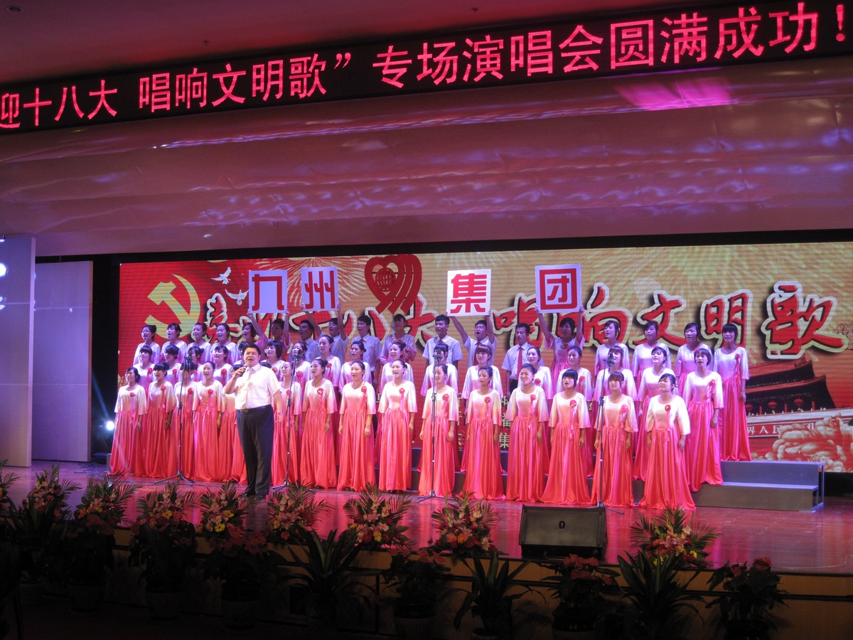 9月13日,由市文明辦和市廣播電視臺(tái)聯(lián)合舉辦的“喜迎十八大 唱響文明歌”專場(chǎng)演唱會(huì)在臨沂市群眾文化廣場(chǎng)舉行,集團(tuán)組織員工參加演唱會(huì)。 演出會(huì)上,集團(tuán)員工以飽滿的熱情合唱了《九州集團(tuán)之歌》,真摯的情感、嘹亮的歌聲,表達(dá)了全體九州人對(duì)黨、對(duì)祖國和對(duì)企業(yè)的無限熱愛,展現(xiàn)了九州人開拓創(chuàng)新,積極向上的精神風(fēng)貌。