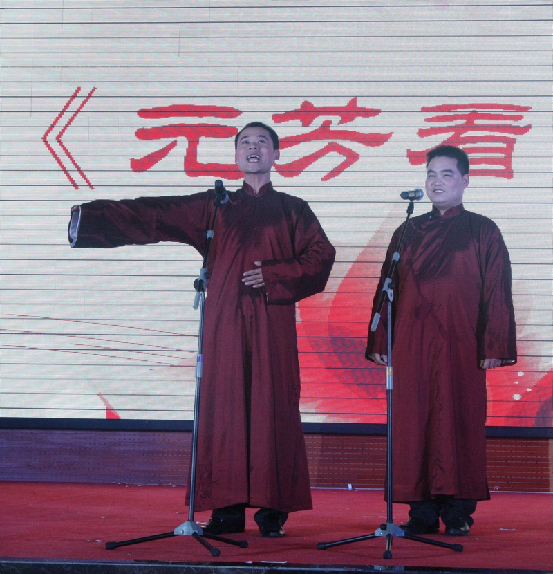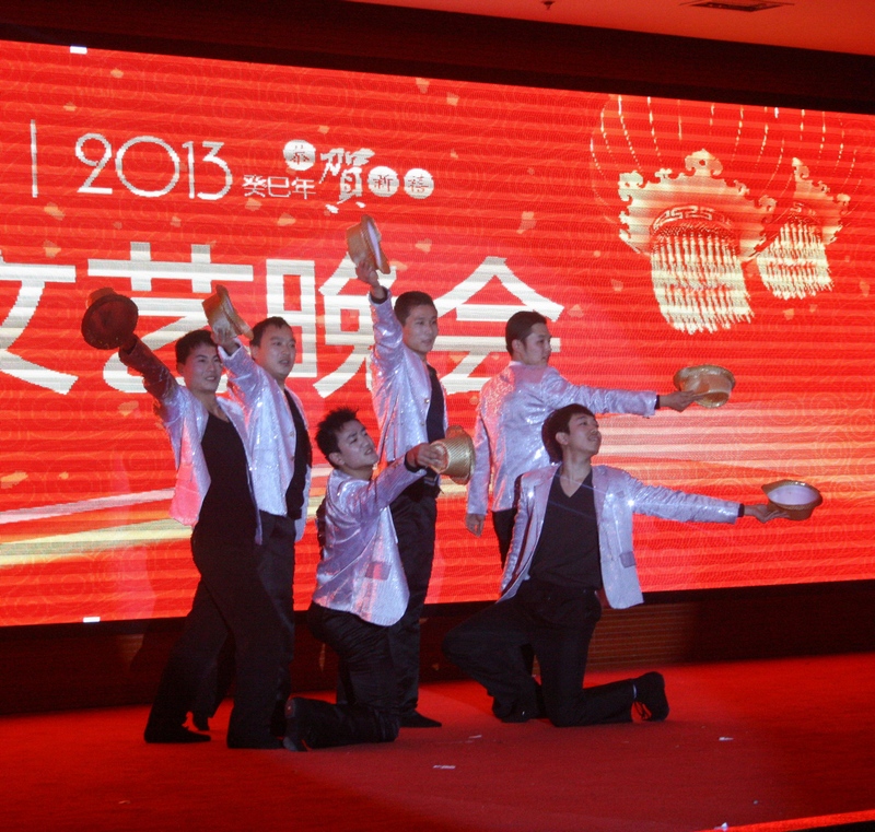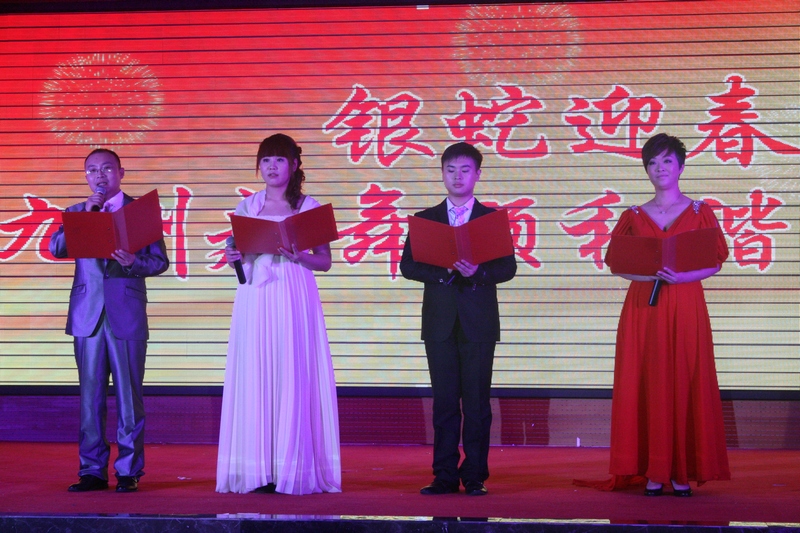 歡歌頌盛世,笑語迎新春。12月27日晚,2013年九州集團元旦文藝晚會在臨沂賓館舉行,楊沂城、王佐文、楊永東等集團領導與干部職工600余人一起觀看演出,共慶元旦佳節(jié)。 晚上6點30分,裝飾一新的臨沂賓館第一會議室成了歡樂的海洋,處處洋溢著喜慶祥和的氣氛。 晚會開始前,集團黨委書記王佐文,代表集團董事會和黨委致賀詞,他向廣大員工、員工家屬及廣大離退休老同志致以節(jié)日的問候,祝大家新年快樂、身體健康、闔家幸福、萬事如意! 晚會在舞蹈《花開盛世中國美》中拉開帷幕。歌伴舞《祝福祖國》、《紅紅的日子》唱出了九州兒女對祖國的無限熱愛。舞蹈《青花瓷》清新的舞姿、《歡聚一堂》熱烈的場面,讓觀眾如癡如醉,贏得了陣陣掌聲。小品《愛在九州》,是我集團員工熱情服務的真實寫照;而《回家過年》,我們又仿佛從中找到了自己的影子。舞蹈《姑娘我愛你》,一群小伙子用優(yōu)美的舞姿演繹了別樣的柔情;《為九州喝彩》則展現(xiàn)出了九州姑娘們的青春活力。詩朗誦《感恩與成長》、《九州,我用青春的名義為你歌唱》,分別表達了員工對企業(yè)的熱愛,與企業(yè)一起成長的強烈愿望。舞蹈《蒸蒸日上》在最后時刻打出的橫幅“和諧九州 蒸蒸日上”,道出了全體員工共同的心聲。相聲《元芳看九州》,結合當前網(wǎng)絡流行語,細數(shù)九州一年來取得的輝煌成績;曲藝說唱《喜唱九州春滿園》,形式新穎,用說唱的形式描述企業(yè)五十年走過的不平凡之路。音樂劇《你幸福嗎?》,寓教于樂,道出了幸福的真諦:以創(chuàng)造為樂,以工作為榮;《假如你要認識我》、《南泥灣》、《珊瑚頌》《九九艷陽天》……,一首首熟悉的老歌,仿佛讓我們回到了那個激情燃燒的歲月。《豐收的碩果》,用曼妙的舞姿,歌頌勞動,歌頌收獲。影子舞《九州跟黨走》,形式新穎,寓意美好,將整場晚會推向了高潮。 晚會結束后,集團領導走上前與演職人員合影留念,祝賀演出成功。 整場晚會,節(jié)目形式多樣,豐富多彩,健康向上,從不同的方面歌頌了企業(yè)一年來所取得優(yōu)異成績。