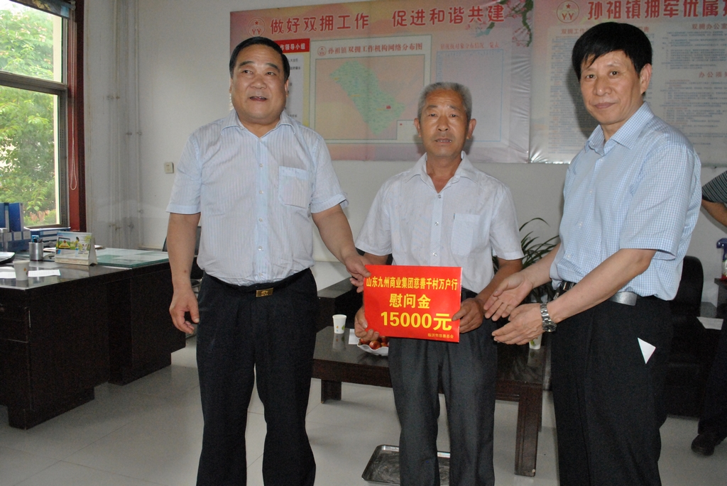 細(xì)雨蒙蒙,愛心融融。6月22日,由我集團(tuán)出資20萬元贊助的“九州集團(tuán)杯” 千村萬戶慈善行活動(dòng)首站走進(jìn)沂南縣孫祖鎮(zhèn)東鐵峪村,向首批10戶困難家庭發(fā)放了救助金和生活用品。活動(dòng)沒有舉行任何啟動(dòng)儀式,車子到達(dá)目的地,市慈善總會(huì)和集團(tuán)領(lǐng)導(dǎo)就冒著蒙蒙細(xì)雨走進(jìn)村民家中,把救助金和部分生活用品分發(fā)到了困難群眾手中。 “千村萬戶慈善行”活動(dòng)由九州集團(tuán)出資20萬元贊助,旨在讓那些行動(dòng)不方便、信息不靈通、身處邊遠(yuǎn)村、貧困村的病災(zāi)戶、五保戶、殘疾人、孤寡老人等困難群體,能夠?qū)崒?shí)在在地得到慈善救助,真正使慈善事業(yè)成為政府社會(huì)保障體系的重要組成部分。活動(dòng)將分階段(年度)進(jìn)行,第一活動(dòng)階段時(shí)間為6月下旬至12月下旬,從6月22日開始,每周利用一天的時(shí)間,走訪1至3個(gè)村,每個(gè)村至少走訪10個(gè)困難家庭,并現(xiàn)場(chǎng)為這10個(gè)困難家庭發(fā)放由山東九州商業(yè)集團(tuán)有限公司和市慈善總會(huì)提供的現(xiàn)金1000元及部分生活用品。 九州商業(yè)集團(tuán):慈善是企業(yè)光榮的社會(huì)責(zé)任 作為本次“千村萬戶慈善行”活動(dòng)的參與者,山東九州商業(yè)集團(tuán)有限公司此次出資20萬元用來救助困難家庭。說起慈善救助,山東九州商業(yè)集團(tuán)有限公司黨委書記王佐文認(rèn)為,慈善捐助是企業(yè)光榮的社會(huì)責(zé)任。 談及此次慈善救助王佐文說,很早公司就有一個(gè)想法,拿出一部分資金救助我市的困難群眾,“看到困難群眾領(lǐng)到救助金后的高興勁,我們感到很欣慰。企業(yè)有責(zé)任幫助困難群眾。” 王佐文認(rèn)為,企業(yè)是社會(huì)的企業(yè),社會(huì)是企業(yè)的發(fā)展空間和利潤(rùn)來源。企業(yè)通過社會(huì)在追求利潤(rùn)的同時(shí),還承擔(dān)著“積善揚(yáng)德、扶危濟(jì)困”,構(gòu)建和諧社會(huì)的責(zé)任,這同樣也是企業(yè)持續(xù)發(fā)展的必然要求。 據(jù)介紹,九州商業(yè)集團(tuán)在市場(chǎng)經(jīng)濟(jì)大潮中,秉承“敬業(yè)報(bào)國(guó),奉獻(xiàn)社會(huì)”的經(jīng)營(yíng)理念,努力創(chuàng)造并發(fā)展了獨(dú)具特色的“誠(chéng)信九州”品牌。企業(yè)先后獲得“臨沂市慈善事業(yè)突出貢獻(xiàn)獎(jiǎng)”、“臨沂市十大愛心企業(yè)”、“臨沂市首屆十大慈善單位”、“省級(jí)精神文明先進(jìn)單位”、“山東省流通改革三十年功勛企業(yè)”、“全國(guó)商業(yè)信譽(yù)企業(yè)”、“全國(guó)商業(yè)名牌企業(yè)”、“全國(guó)守合同重信用企業(yè)”等榮譽(yù)稱號(hào)。(摘自《沂蒙晚報(bào)》)