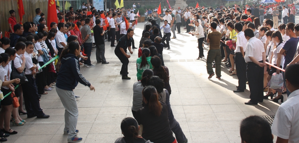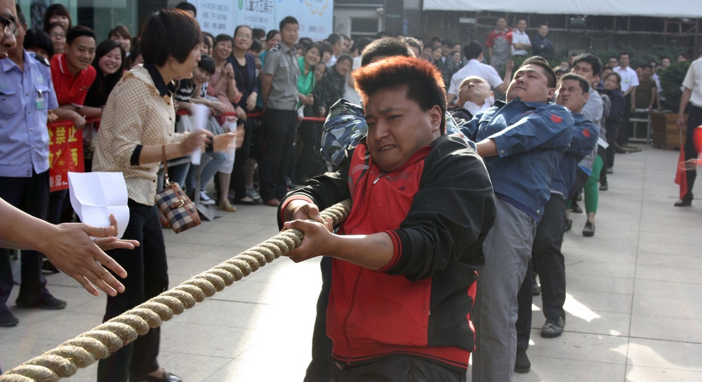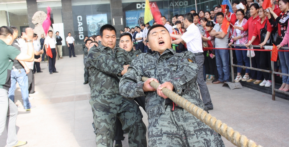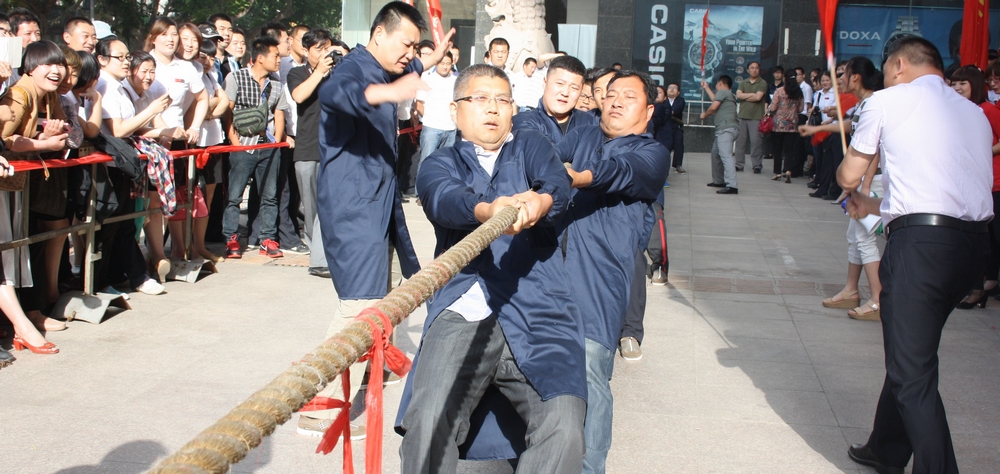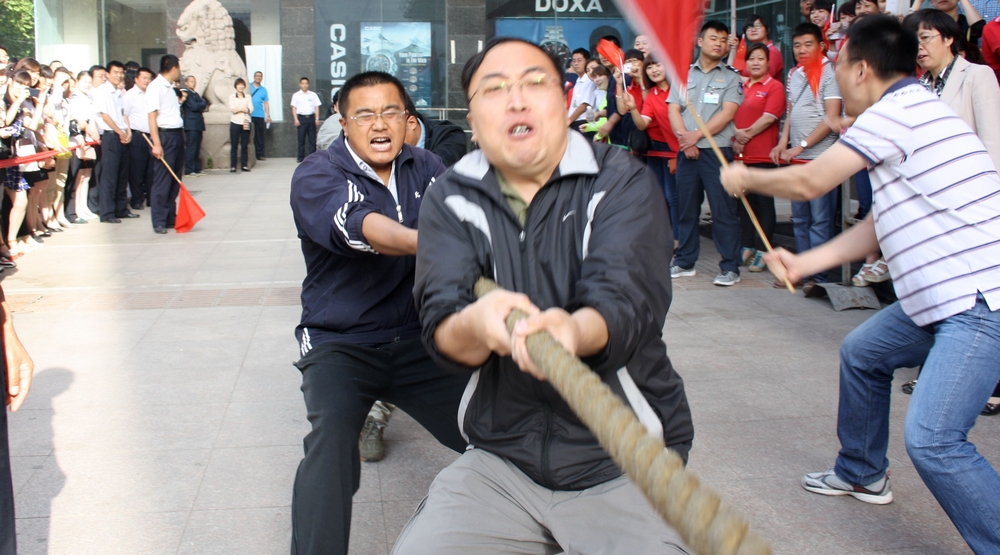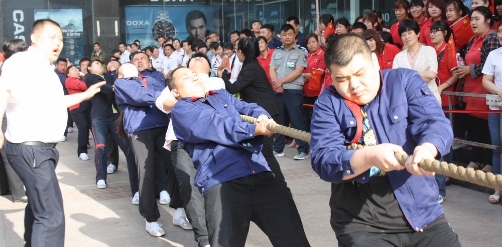 5月26日,集團(tuán)一年一度的拔河比賽在九州商業(yè)大廈門前廣場舉行。 本次拔河比賽共有六支代表隊(duì),每隊(duì)男、女各8名隊(duì)員參加比賽。經(jīng)過小組循環(huán)賽、半決賽和決賽,共十輪緊張激烈的比賽。最終,連鎖超市公司代表隊(duì)獲得冠軍,臨沂賓館代表隊(duì)和九州汽車銷售公司代表隊(duì)分獲二、三名,九州商業(yè)大廈代表隊(duì)、九州宜家佳代表隊(duì)、集團(tuán)行政代表隊(duì)分列第四至六名。 活動的開展,豐富了員工文化生活,促進(jìn)了交流溝通。比賽現(xiàn)場,廣大員工積極拼搏、團(tuán)結(jié)協(xié)作,較好地展示了員工健康向上的精神風(fēng)貌和企業(yè)良好的形象。