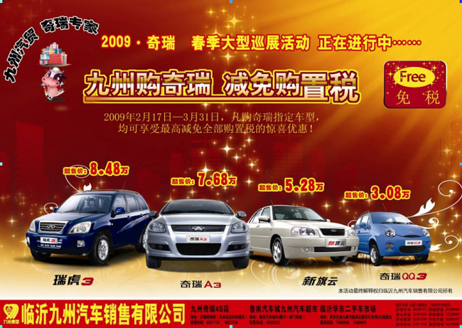 九州購(gòu)奇瑞 減免購(gòu)置稅